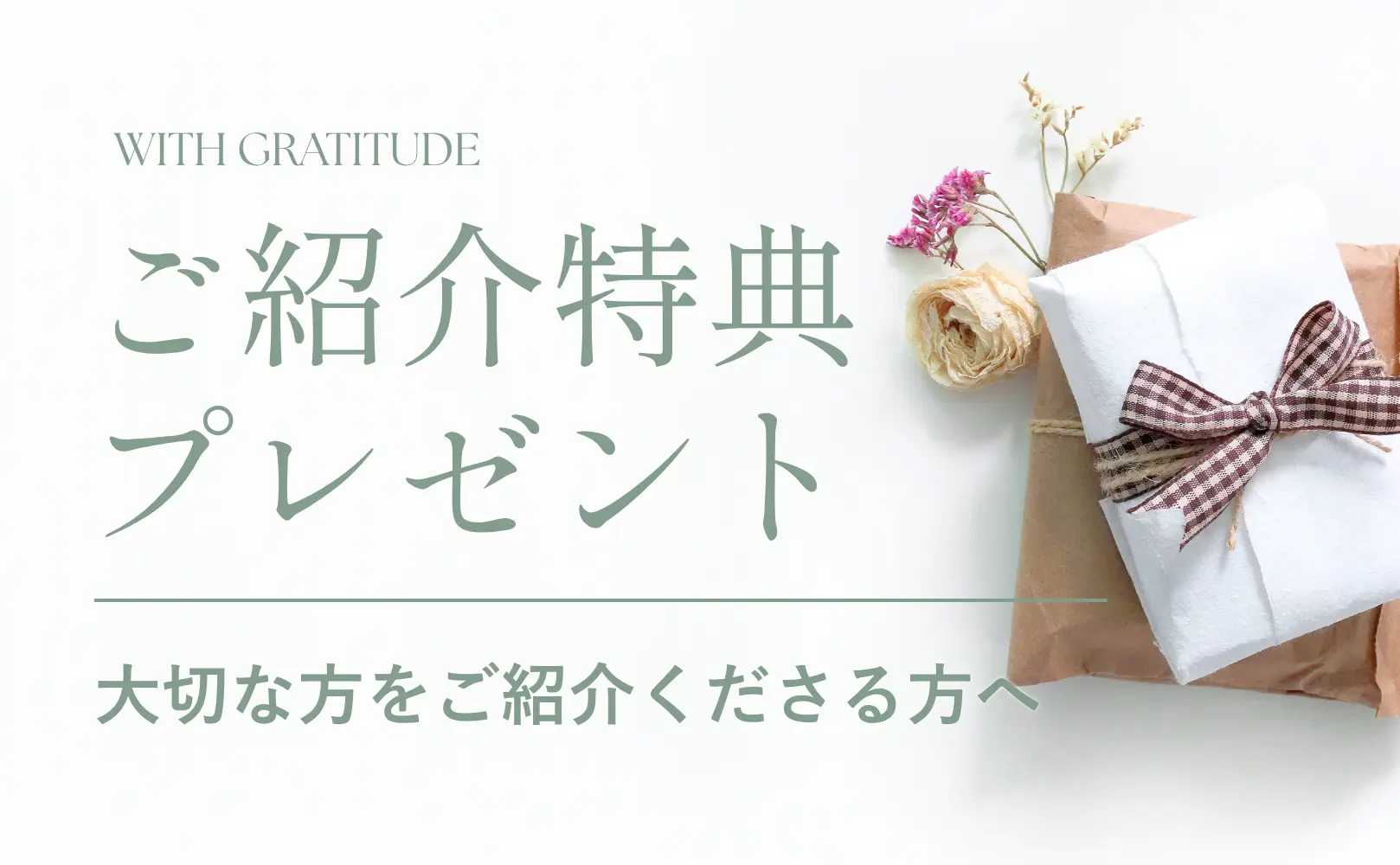 感謝の気持ちを形にできたらと考え、「ご紹介特典プレゼント」 をスタートすることにしました。